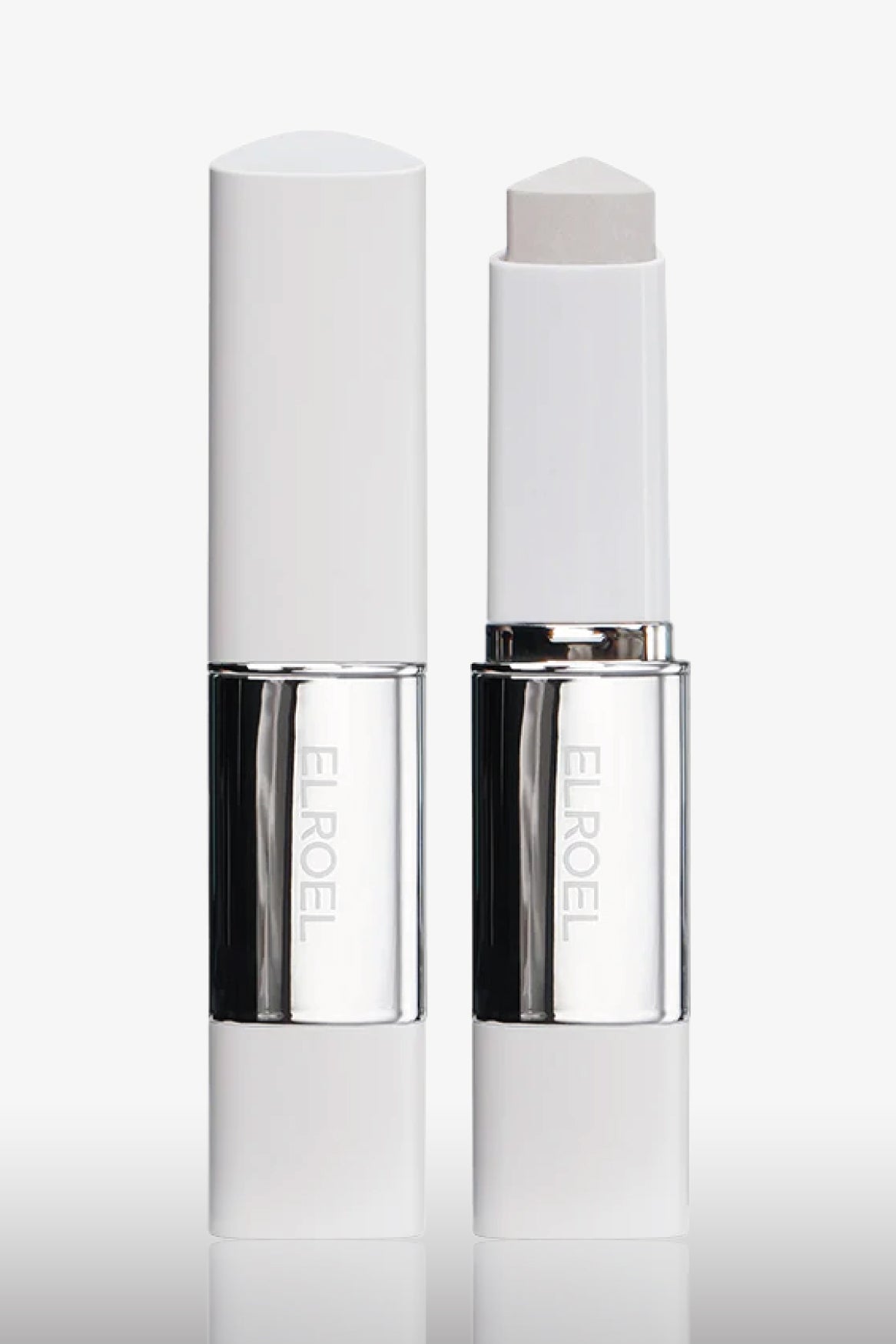 ELROEL Blanc Cover Stick V es una base en barra con fórmula de cambio de color que comienza como un bálsamo blanco y se adapta al tono natural de la piel al difuminarse. Combina la hidratación de una crema con la cobertura de una base, ofreciendo un acabado uniforme y semi luminoso.